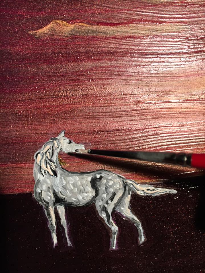 Painting a 1.5″ horse isn’t easy! Back in 2017 I did a series of tiny oil paintings for an art show in Nashville. This one is called “High Plains Drifter” inspired by the spotted horse Clint Eastwood rode in the famous film. The painting is tiny at 4″ x 6″.