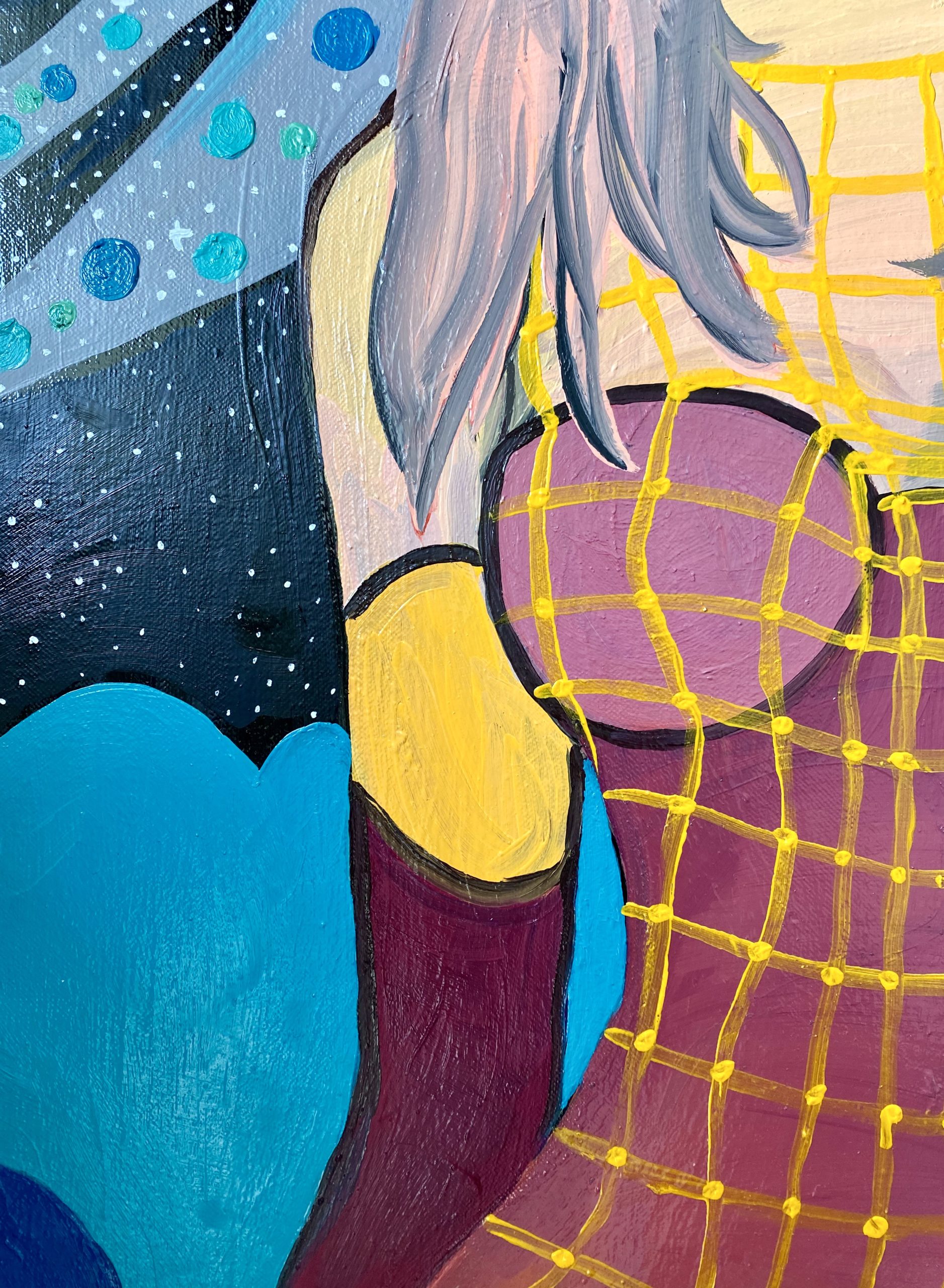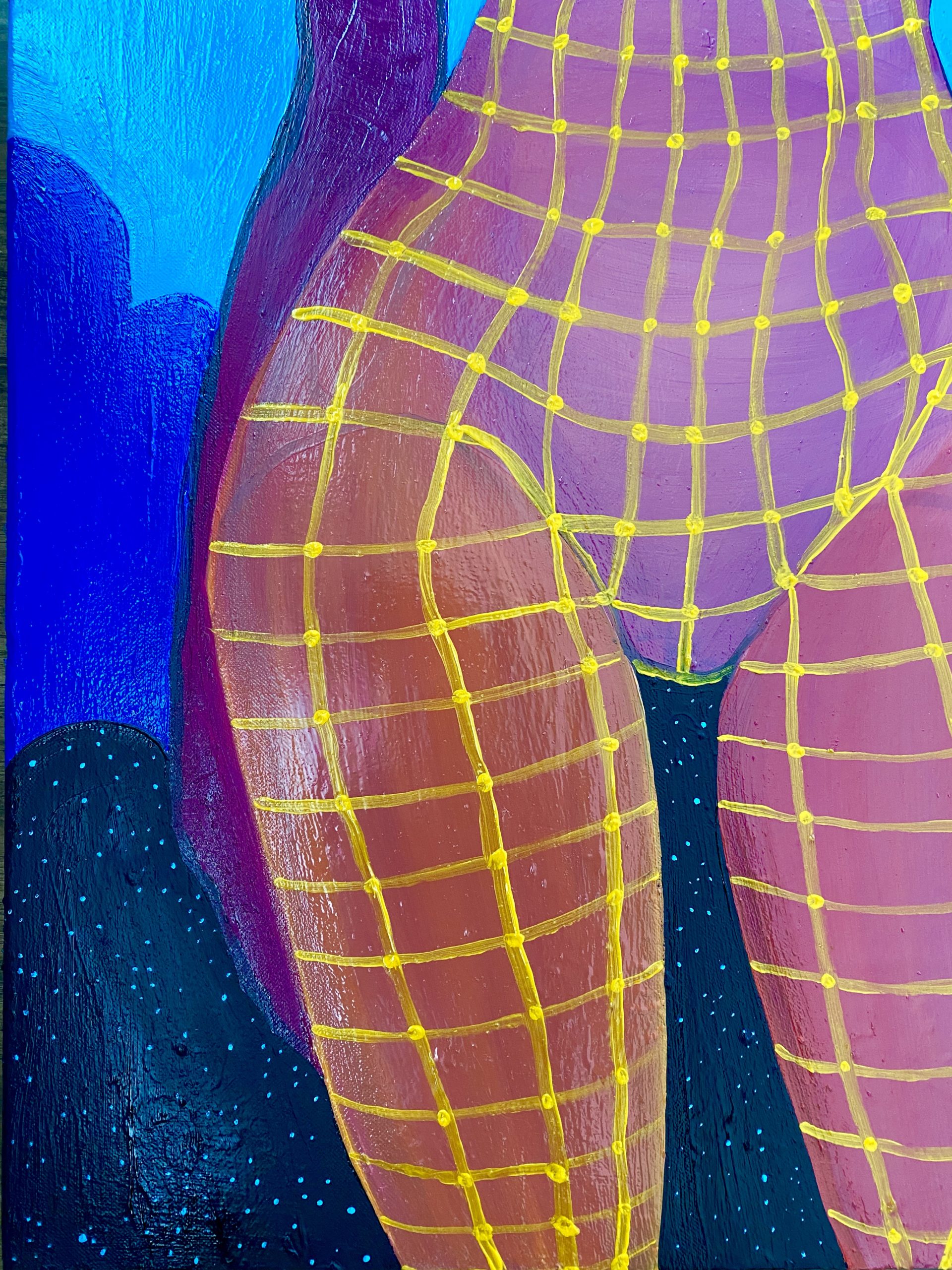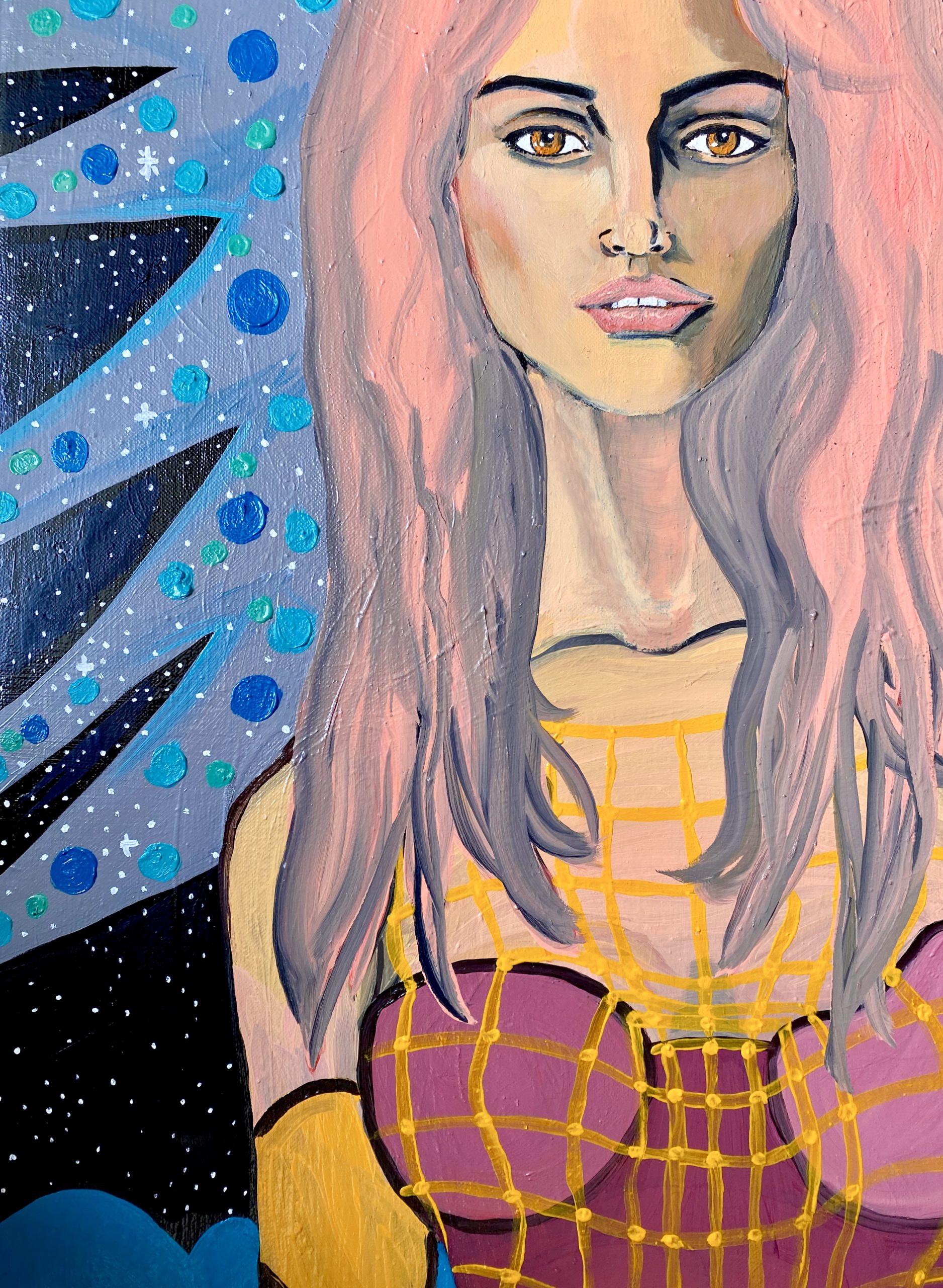 This is an oil painting I almost finished in 2008. It had some technique issues, I considered giving up on it and did not work on it again for ten years until this past June 2020. I really put the effort in, wasted a lot of oil paint figuring it out, it was not a well planned project. I repainted it almost entirely, the figure, background and finally finished it! The colors and composition are absolutely stunning in real life, and it looks beautiful on a wall at a large size of 20” x 47”!